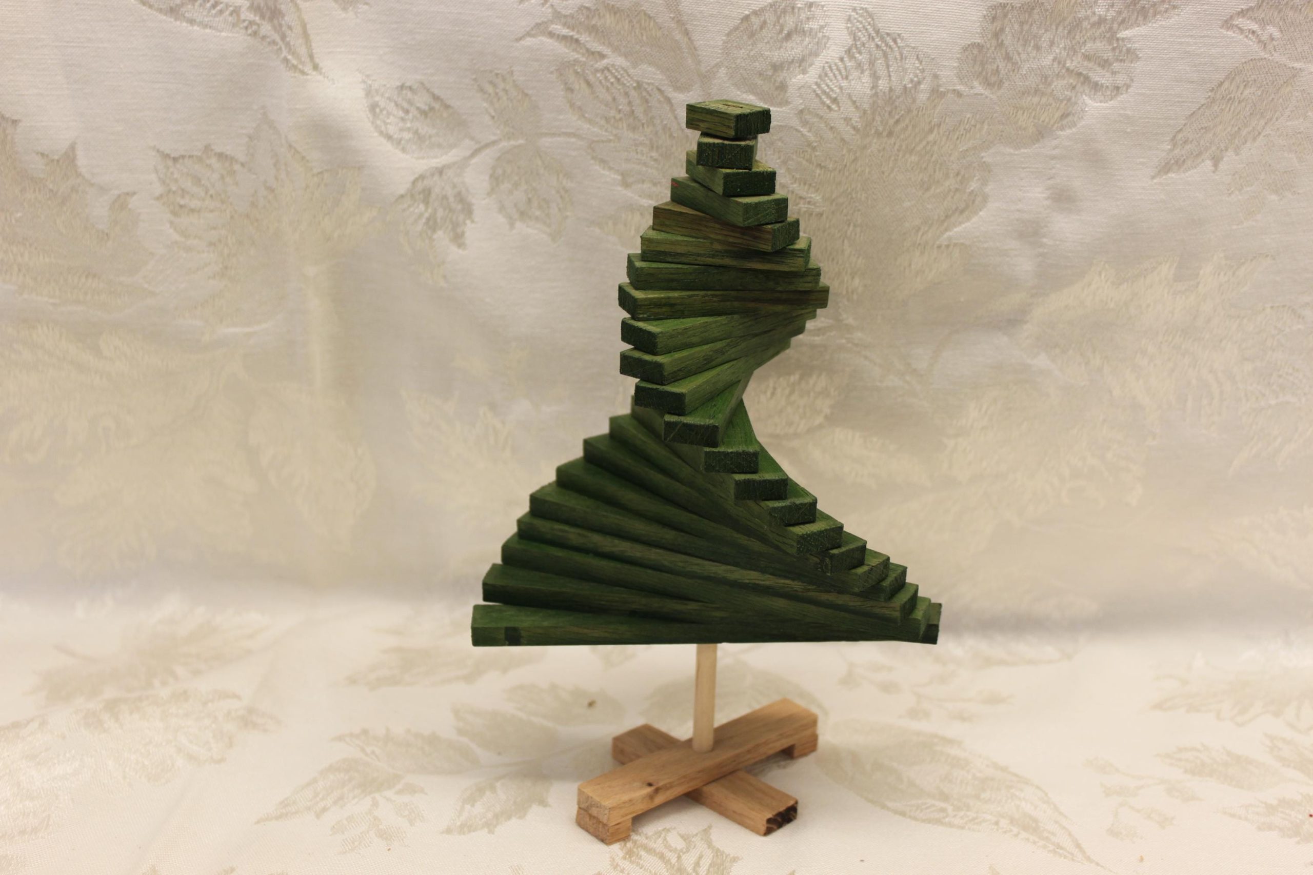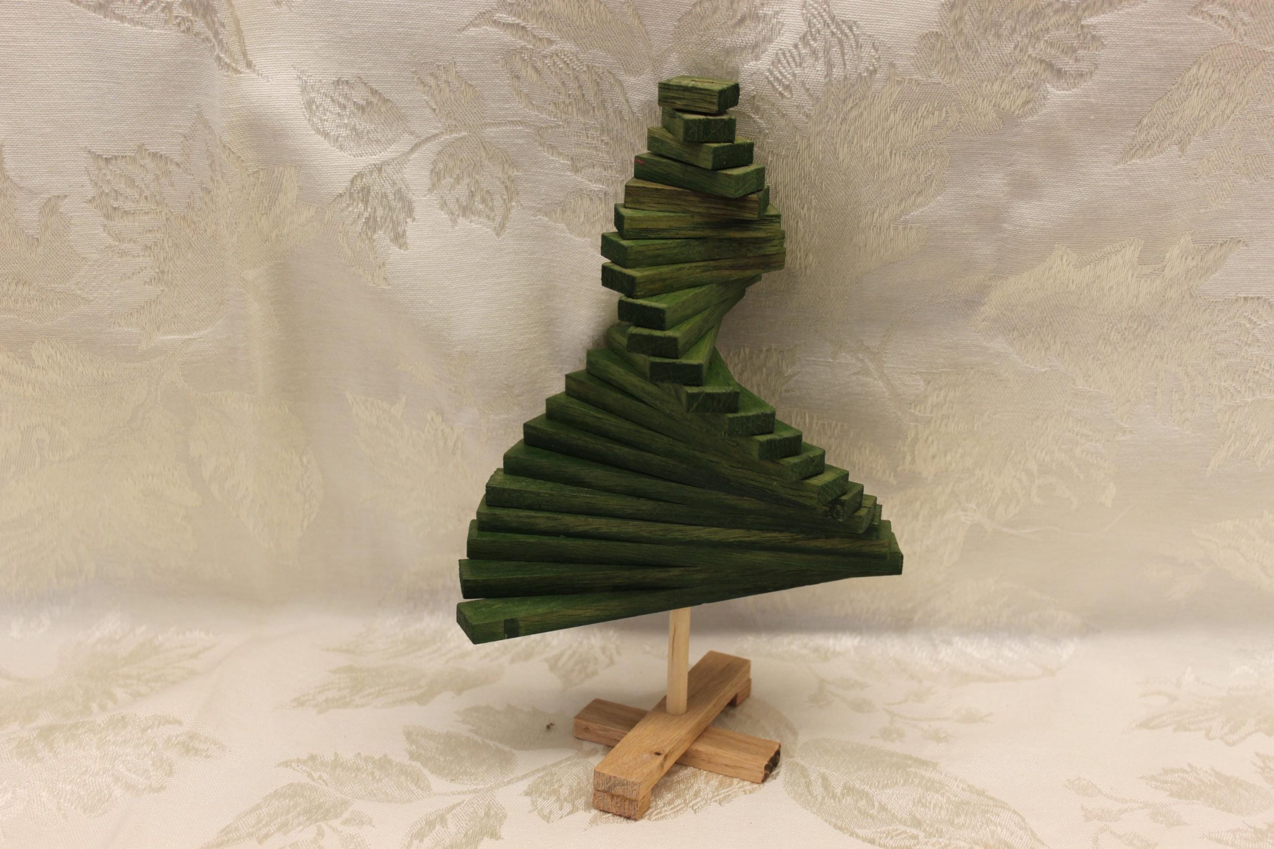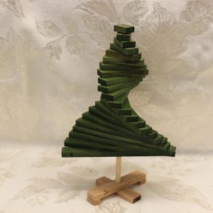 This wooden Christmas tree is sectional and can be manipulated to form as your taste prefers. Each section can be rotated on the center ‘trunk’ to for various shapes. The base an sections can be laid flat for easy, off-season storage.