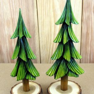 Two Hand Carved Pine Trees – Rustic Wooden Decor